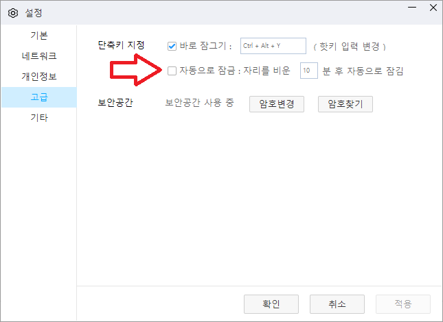 프로그램 설정에서 자동 잠금 기능이 기본적으로 켜져있습니다.