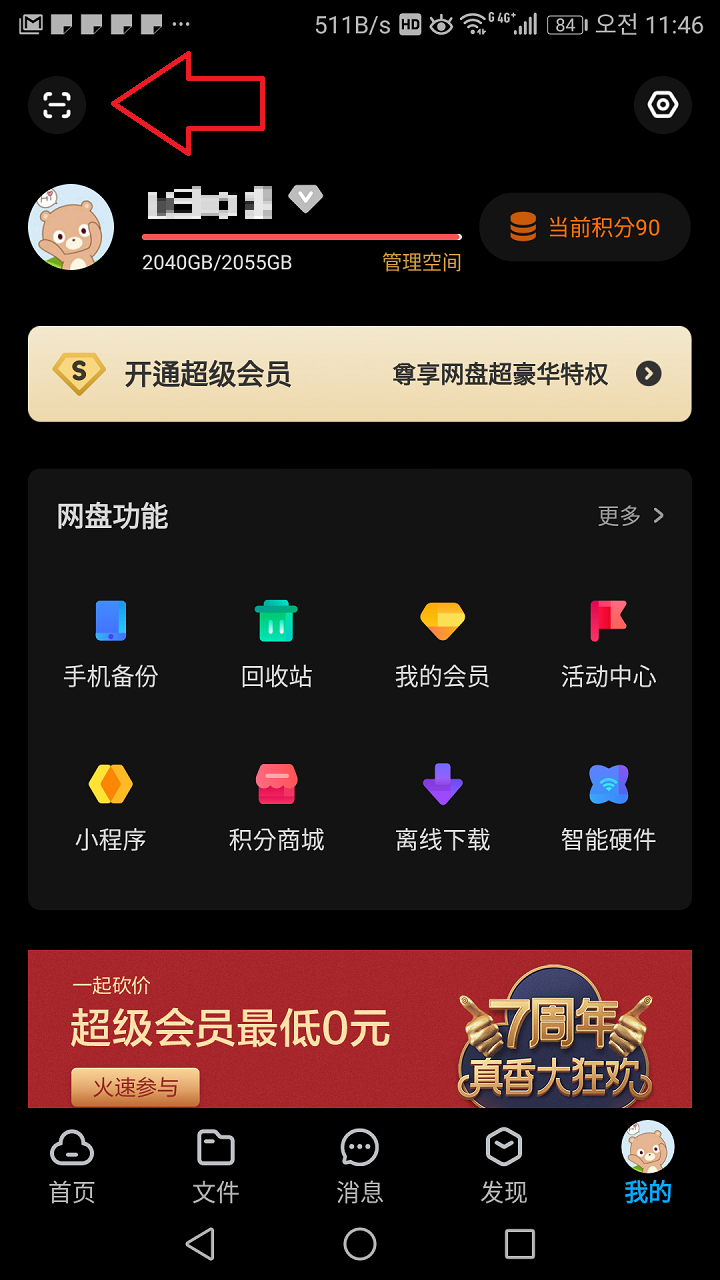 바이두 클라우드 모바일 앱에서 잠금 해제 화면의 QR코드를 스캔하여 해제하는 방법입니다.
