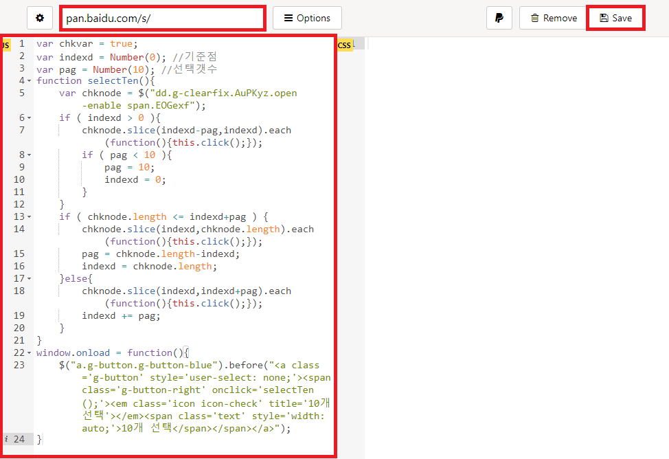 [JS] 바이두 공유자료 10개씩 선택해서 들여오기