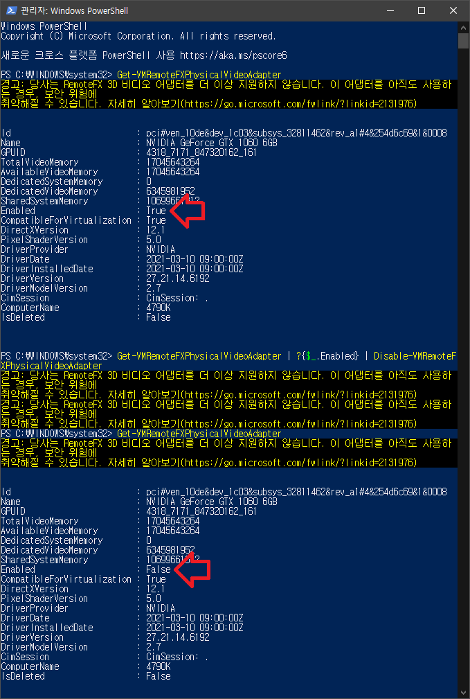 RemoteFX 기능이 켜져있으면 비활성화 하는 명령어입니다.