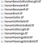 개인적인 백업 용도입니다. 나눔 폰트를 네이버에서 제작/배포하고 있습니다. 하지만 .exe 형태의 설치파일 형식만 제공하고 있습니다. 그냥 TTF나 OTF 파일이 필요할때가 있는데 말이죠. .exe 파일과 .dmg 파일에서 추출한 폰트 파일입니다. 다운로드 링크와 정보 NanumFontTTF.zip (미디어파이어) / (미러-구글 드라이브) 29.6MB (31,085,112 바이트) CRC32: 71C07299 MD5: 5150BF3D4B44EDF5B17EF45982DD4DF9 SHA-1: FB4A6ED8932486B46F316F0908D078157705A8FA 다운로드 링크와 정보 NanumFontOTF.zip (미디어파이어) / (미러-구글 드라이브) 19.6MB (20,616,828 바이트) CRC..